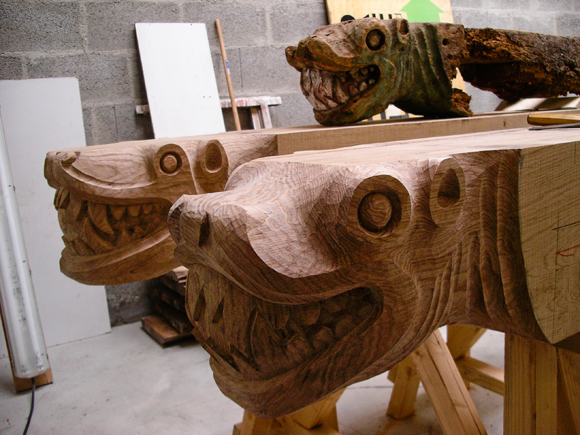 Depuis 2005 je restaure régulièrement des sculptures de charpentes :